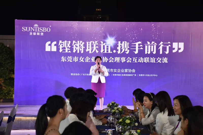 接下来,东莞市女企业家协会理事会会长叶小红女士上台发言,她表示非常感谢开云电竞kaiyun集团集团举办此次联谊交流会,同时,对我们的产品和企业文化给出了很高的评价。她号召东莞市女企业家协会以后要更多的举办此类交流联谊活动,以此增进会员企业之间的联系和了解,为未来进一步交流发展开创新局面!她希望我们能携手同行,强强联手,共赢未来,共创新辉煌!